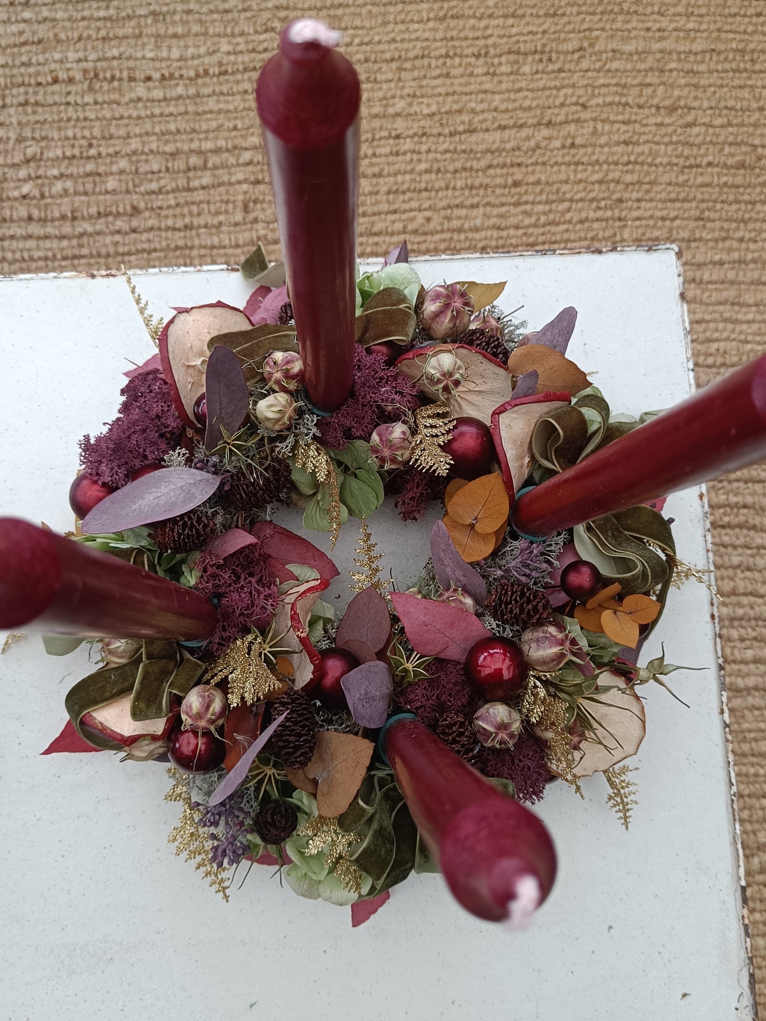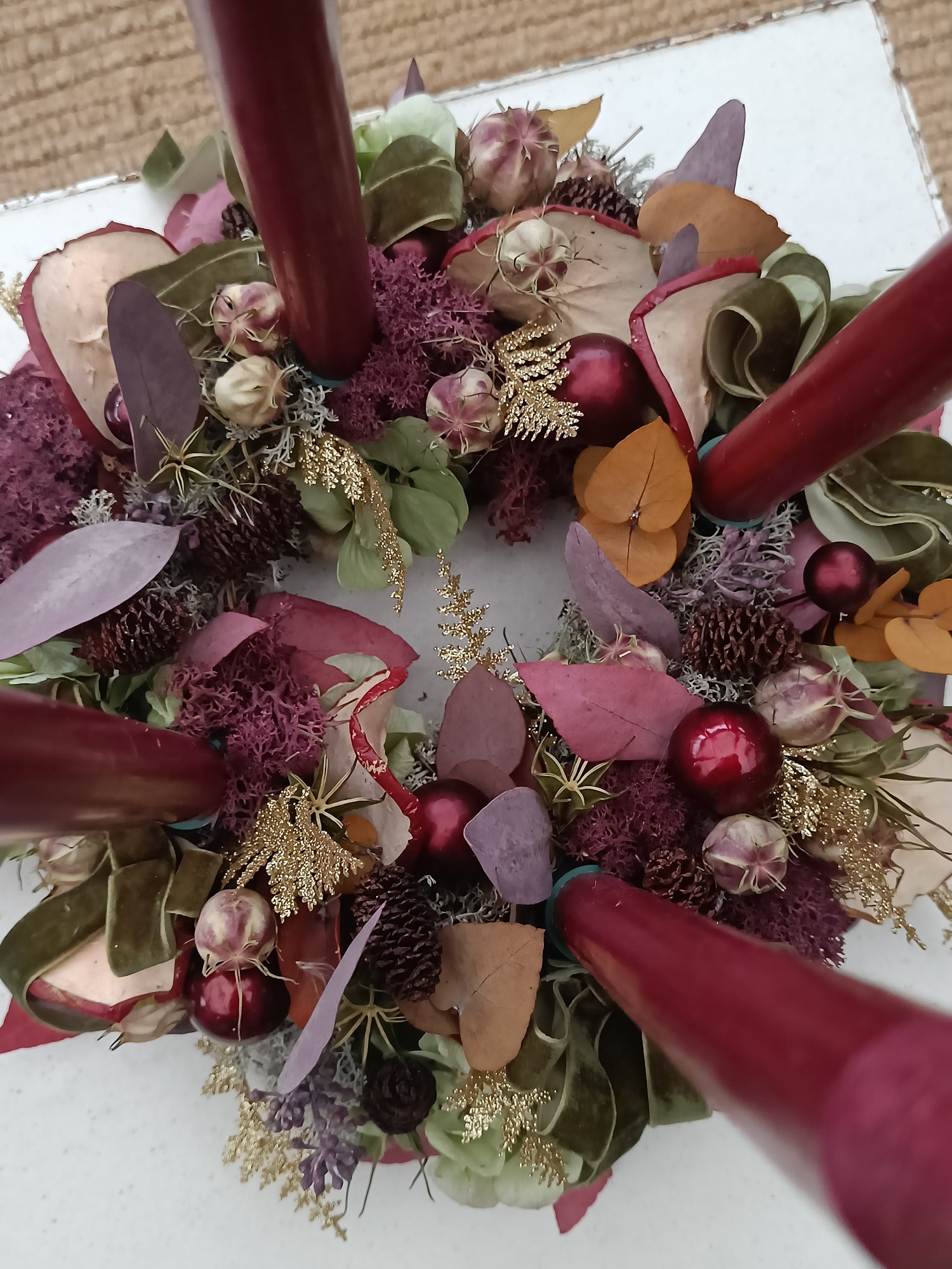 Klassisk adventskrans holdt i Grønne, bordeaux og med guld 🌲 kan genbruges år efter år