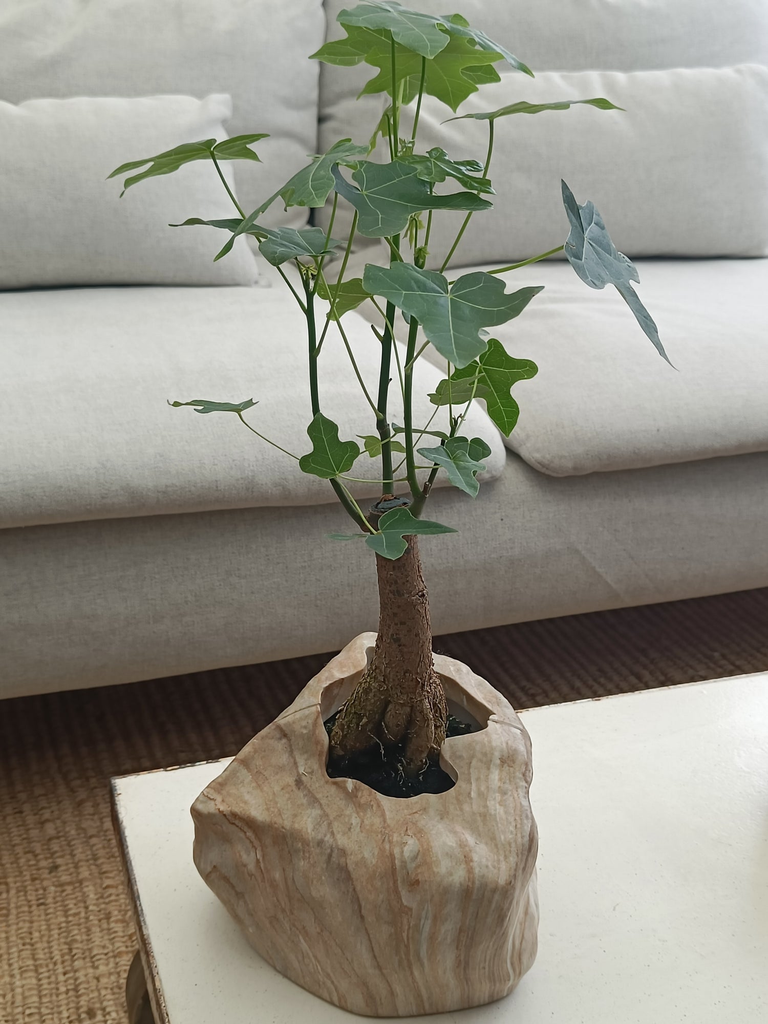 Plastikpotte og underskålen medfølger 🍃 den passer til en Plastikpotte på 12 cm men den følger som sagt med. 😊 Selve "stenen" Måler 13 cm høj på det højeste, og 18 cm på det bredeste 🌿