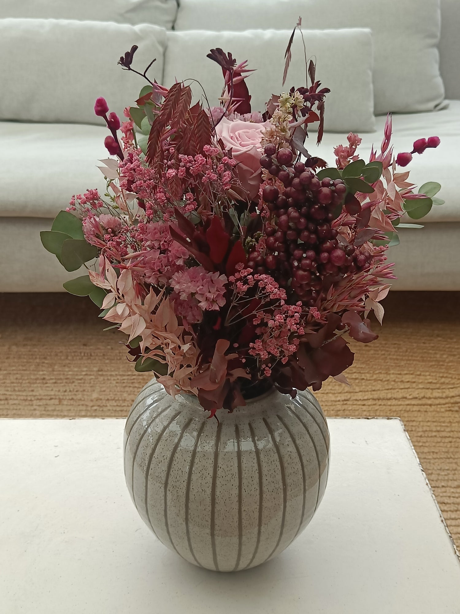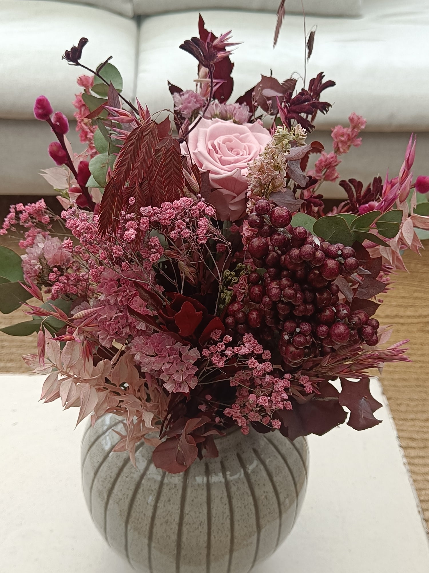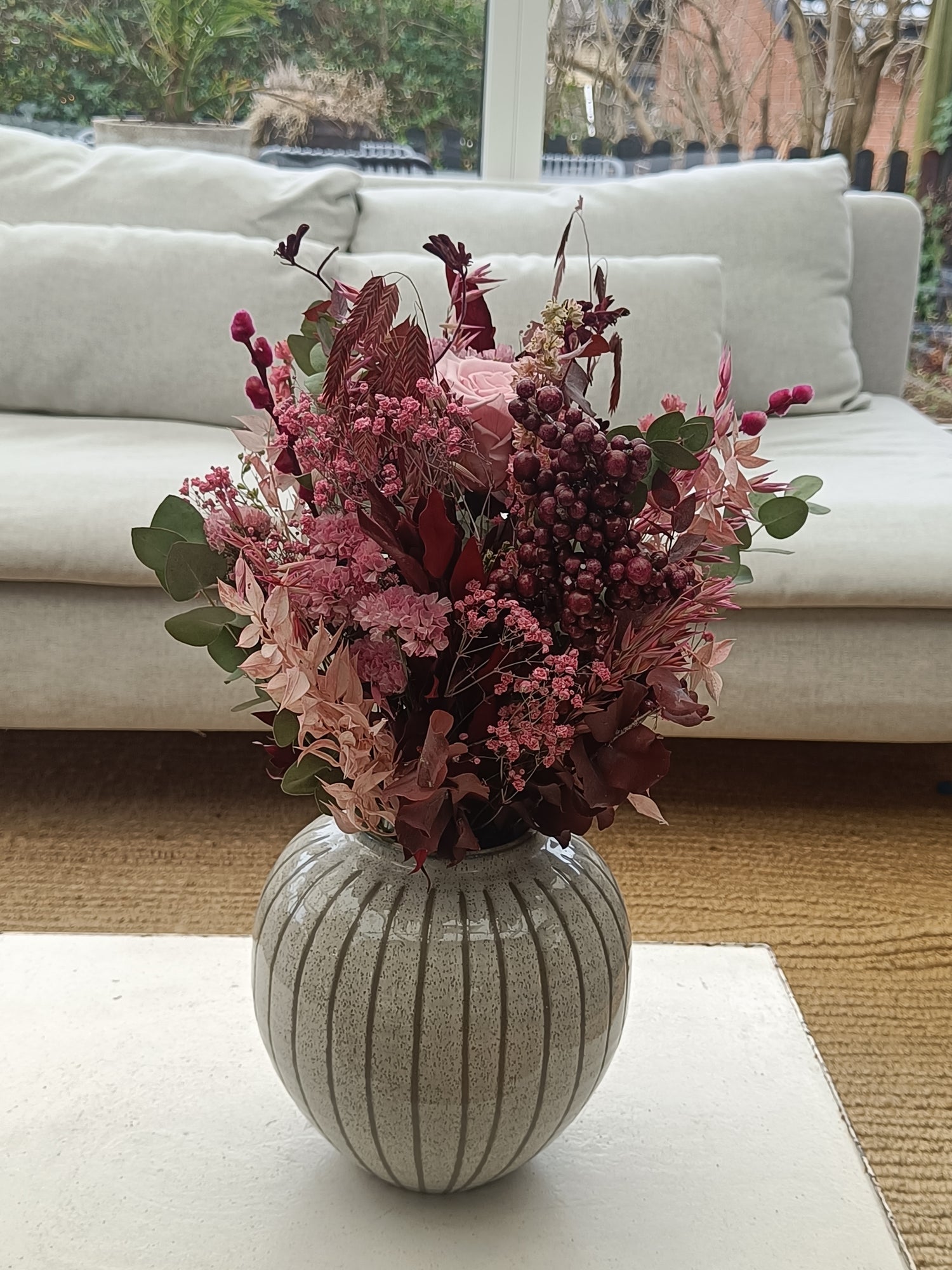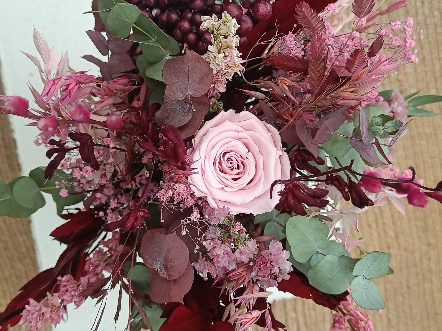 Evighedsbuket holdt i rosa, pink og bordeaux farver 💐❤️ så bliver det ikke mere tøset