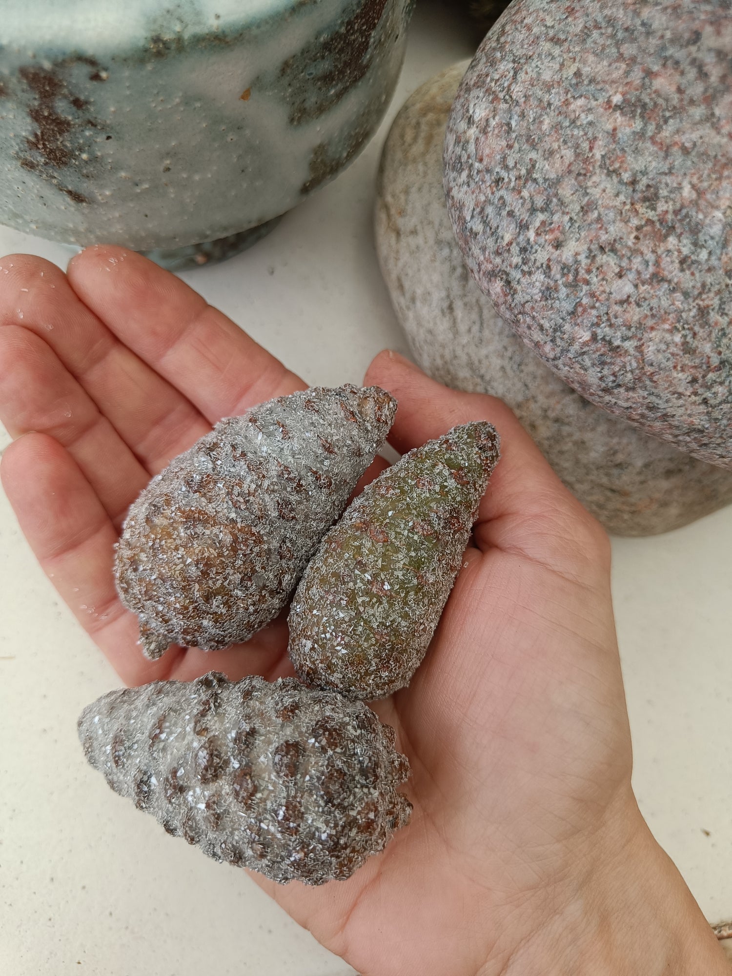 Da det er natur, varierer størrelse og form, jeg finder 3 stk I forskellige størrelser 🌲