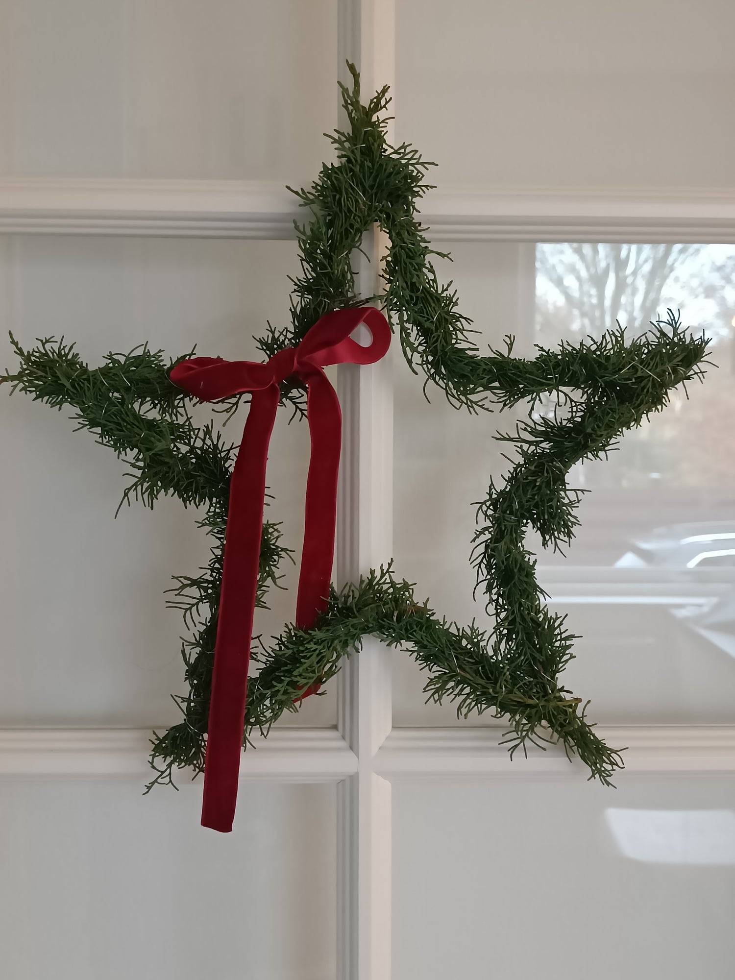 Fineste stjerne bundet på begge sidder med en thuja art, der tørre pænt. Så den kan hænge frit i rummet og stadig være pæn på begge sidder 👌🌲